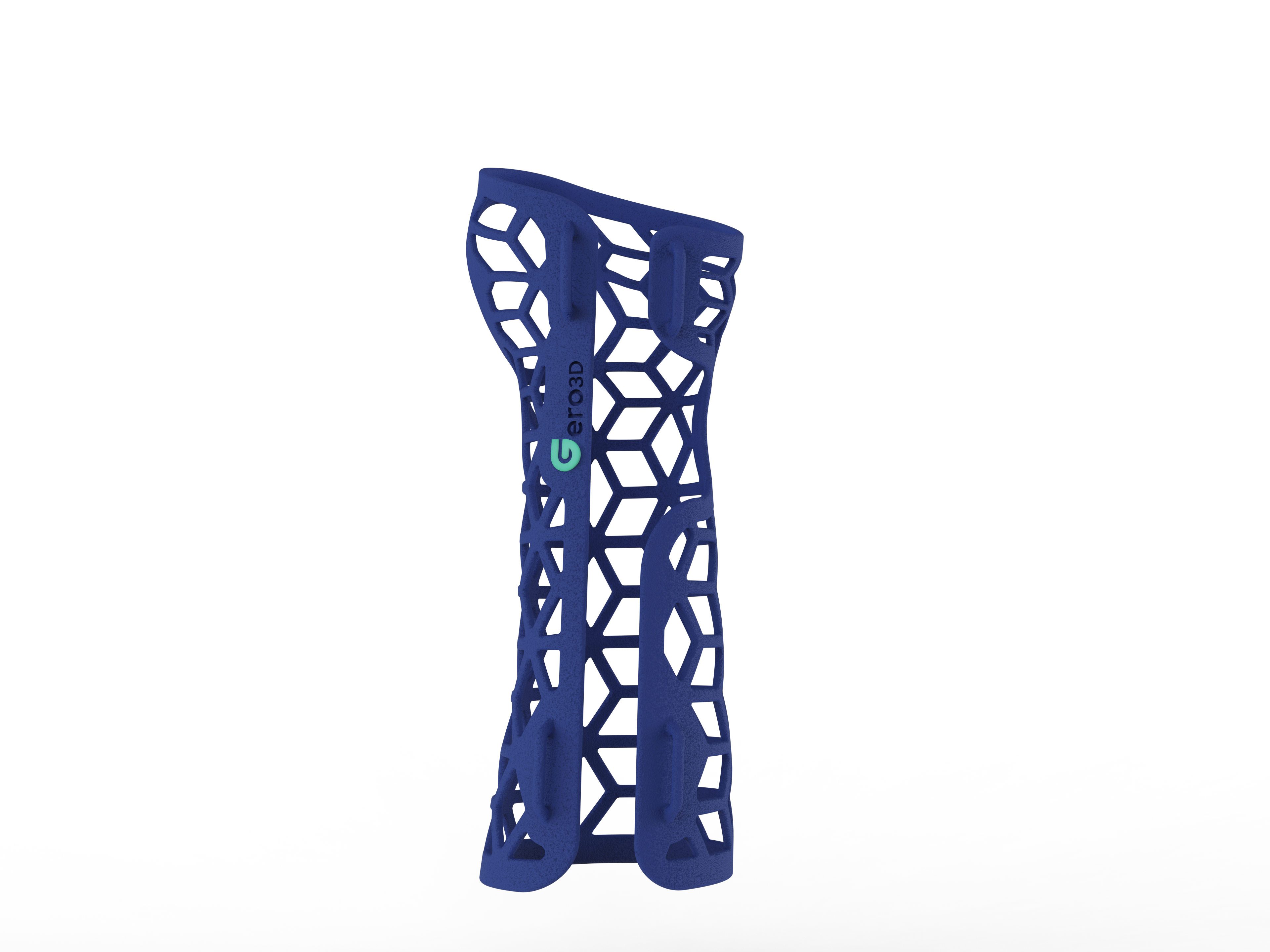 - גבס Gero3D מיוצר מ- Nylon 12 -חומר בעל תכונות מכניות ייחודיות, ידידותי לעור, אינו גורם לגירויים ומאושר רפואית.